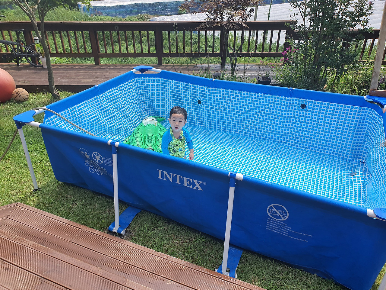비가 계속 한 가지 아쉬웠던 것은 야심 차게 준비했던 수영장이었습니다. 정말 덥지 않으면 물이 차가워서 들어가기 쉽지 않았고, 날씨가 좋은 날 마음먹고 수영장을 오픈하려 했더니 벌레가 빛의 속도로 물에 들어가는데, 첫째의 경우 벌레가 물에 들어가니 안 들어가겠다고 하여 여름 동안 한 3번 정도 썼습니다.둘째랑 저랑만 즐겼습니다. 내년에는 과연 쓸 수 있을지 모르겠습니다.