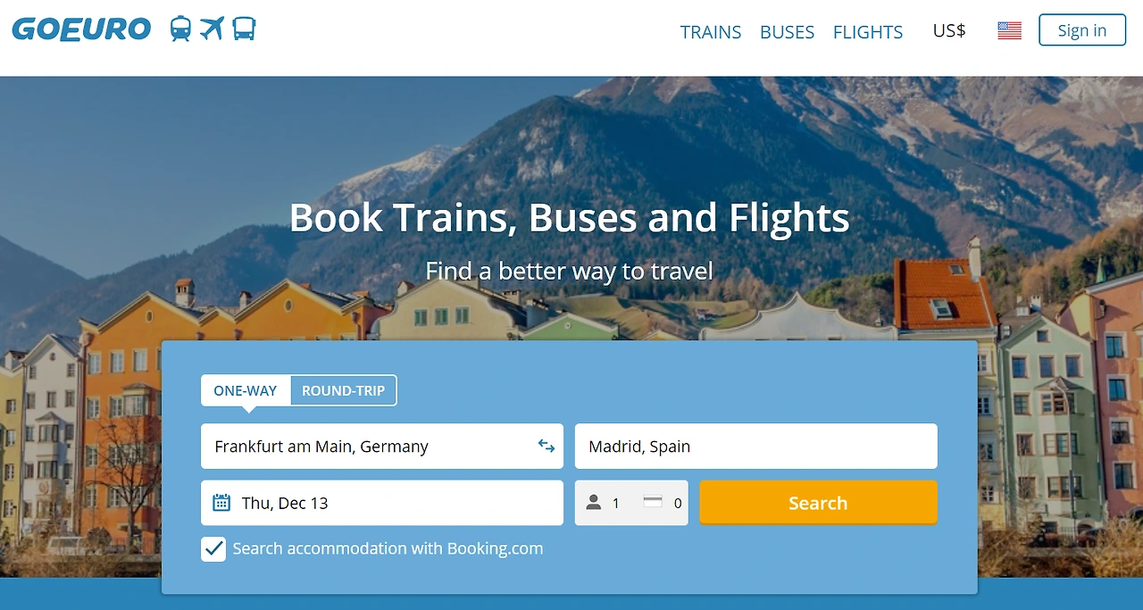 모바일 앱 : ios, 안드로이드 가능. 인터넷 사이트 : https://www.goeuro.com/