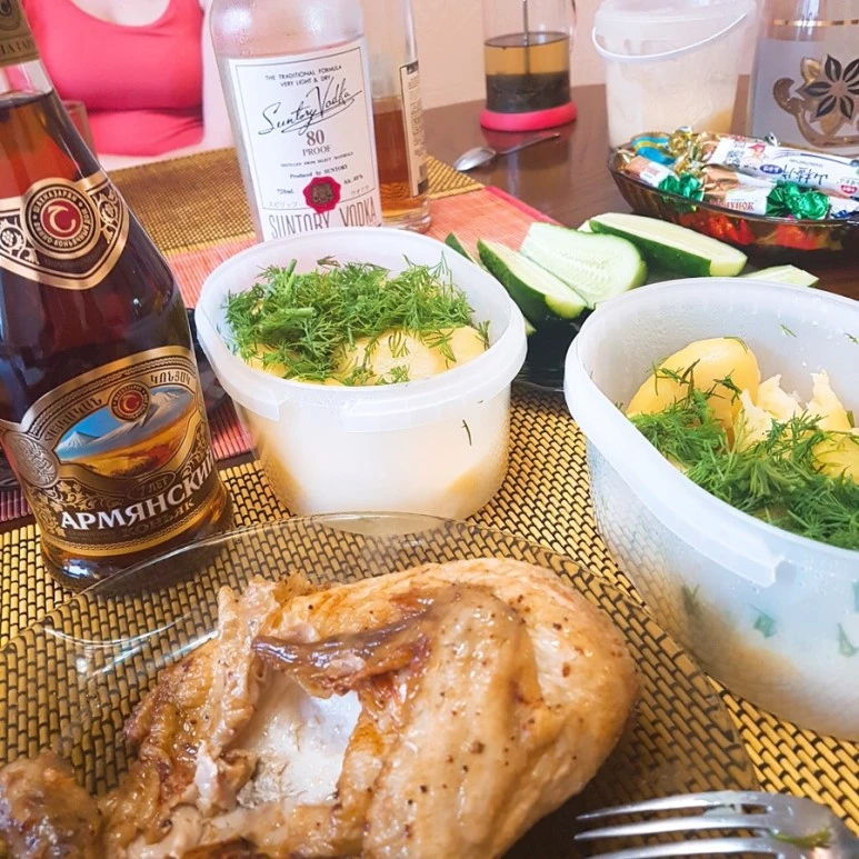 도착한 시간이 저녁이라.. 음식점을 찾으러 Daria에게 말을 걸었는데, 집에 있는 감자와 닭고기를 먹어도 된다며 주섬주섬 꺼내더니..