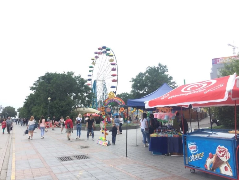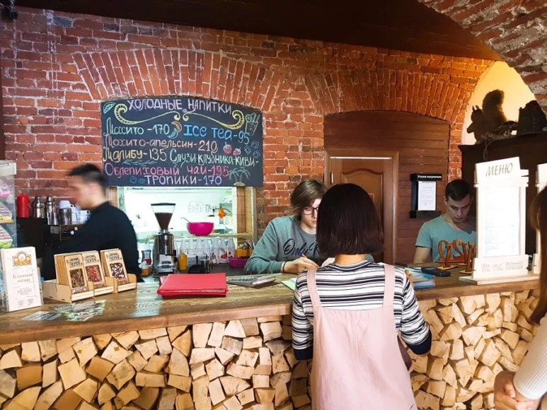우흐뜨블린 옆에 작고 귀여운 마트료시카 간판의 기념품 가게. 그 옆이 바로 해적커피에요. 현지의 스타벅스 느낌인데, 저렴해요. 아르바트 거리에서 해양공원은 매우 가까워요. 횡단보도 하나 건너 길을 따라 걸으면 멀리 바다가 보여요.