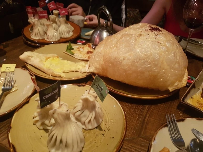 조지아식 만두인 칸깡키, 보드카 차차 마셨어요. 60도 술을 한 입에 털어넣으려니 으으-