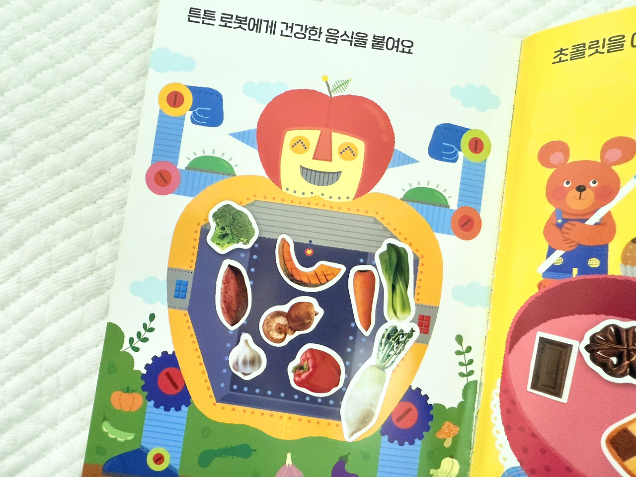 웬 사과 로봇? 사과 로봇이 뭐지 처음 들어보네... 생각하고 있는데, 아이가 조그마한 손으로 스티커북을 뒤적뒤적하더니