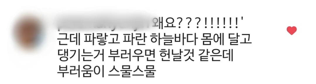 그런데 파아란 깁스 덕분에, 친구의 센스 넘치는 말 덕분에 한순간 웃음꽃이 피었다. 이 단순한 인생이여. 이왕 이렇게 된 거, 나의 파아란 통깁스를 아껴주고 사랑해주기로 했다. 내 깁스를 보며 '파랗고 파란 하늘바다 몸에 달고 댕기는 거 부러우면 혼날 것 같은데 부러움이 스물스물' 이라고 말씀해주시는 지인분도 계시니까 말이다.