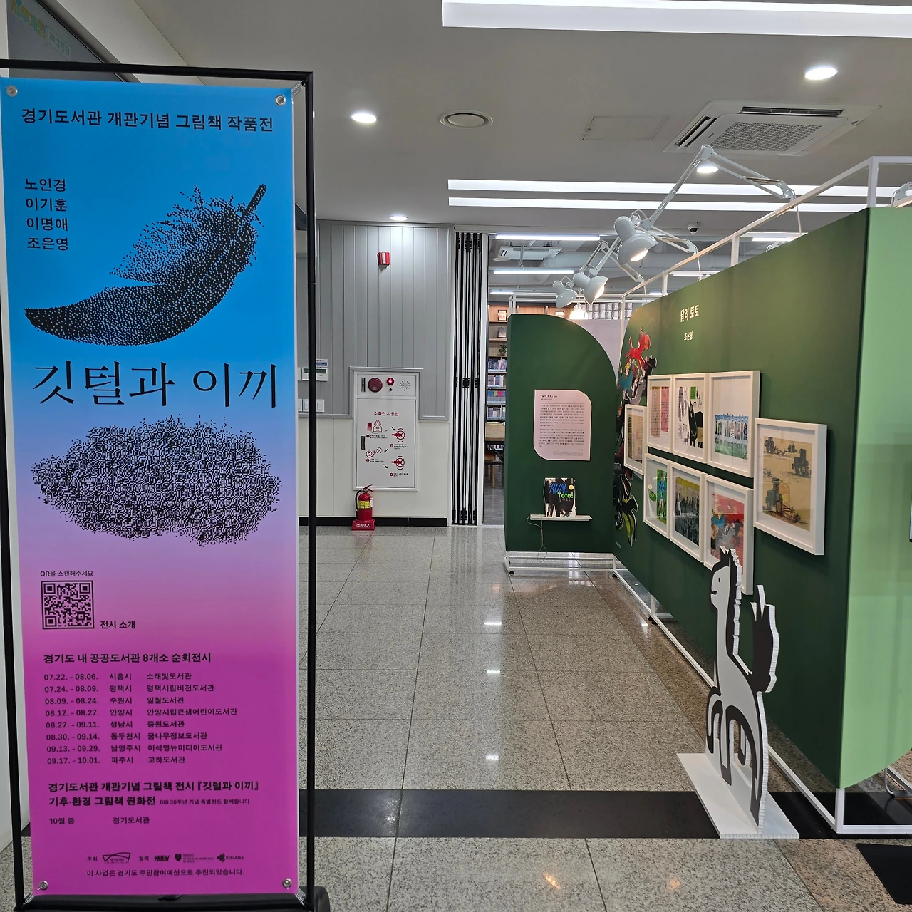둘째가 도서관 수업을 듣는 동안, 나는 첫째 아이와 책을 읽고 있었다. 그때 어디선가 익숙한 목소리가 들려 가보니, 그림책 전시와 도슨트를 진행하던 아는 분을 만났다. 반갑게 맞아주시며 “들어보라”고 권해주셔서, 아이와 함께 도슨트를 들을 수 있었다.