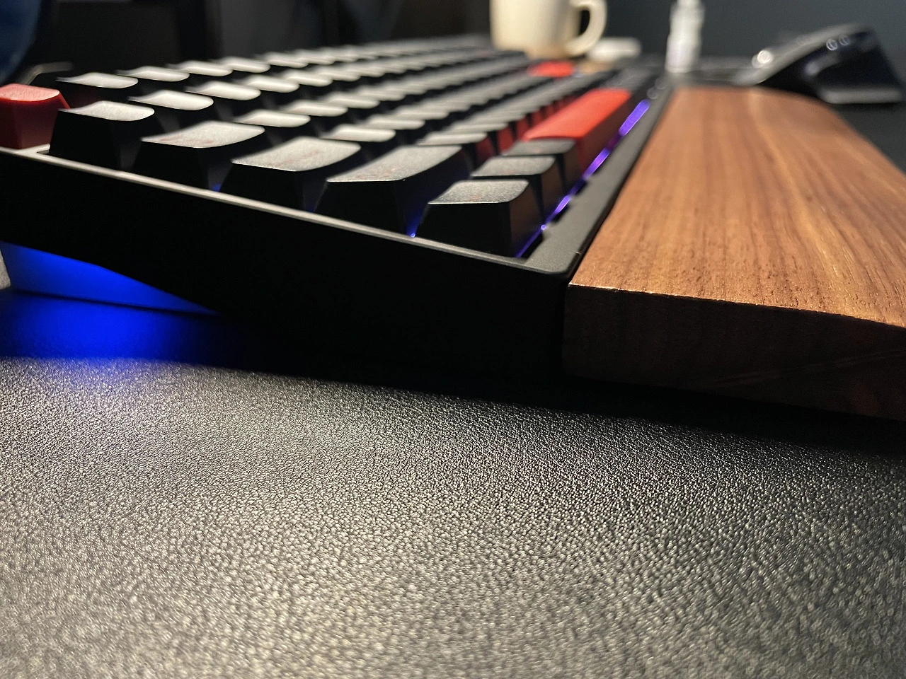 하단부에 같은 높이의 팜레스트를 사용했을 때 걸리는 것 없이 편하다. 키보드 자체에 높이 틸팅 기능이 없는데, 설계가 잘 되어있어 굳이 필요치 않다.