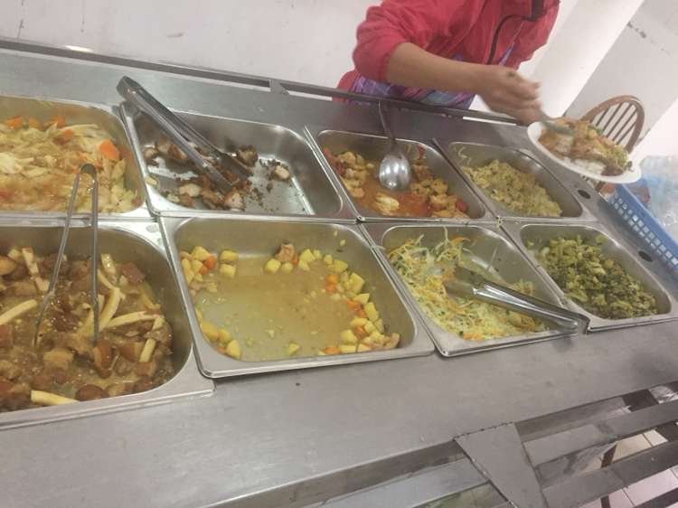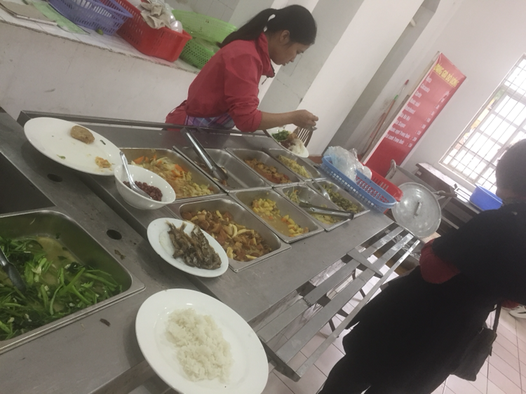 하노이대학 학생식당이다. 여덟 가지 반찬 중에서 먹고 싶은 것을 고르면 반찬 가지 수에 따라 돈을 낸다. 학생식당이어서 값이 싸다. 한국 돈으로 1000원을 넘지 않는다.
