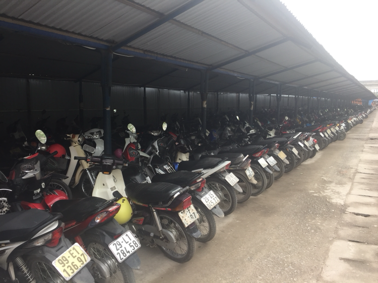 탕롱대학 교문 앞의 오토바이 주차장이다. 질서 정연하게 세워져 있다.