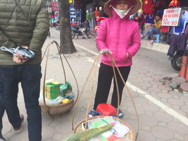 행상은 이렇게 바구니에 상품을 담아서 판다.