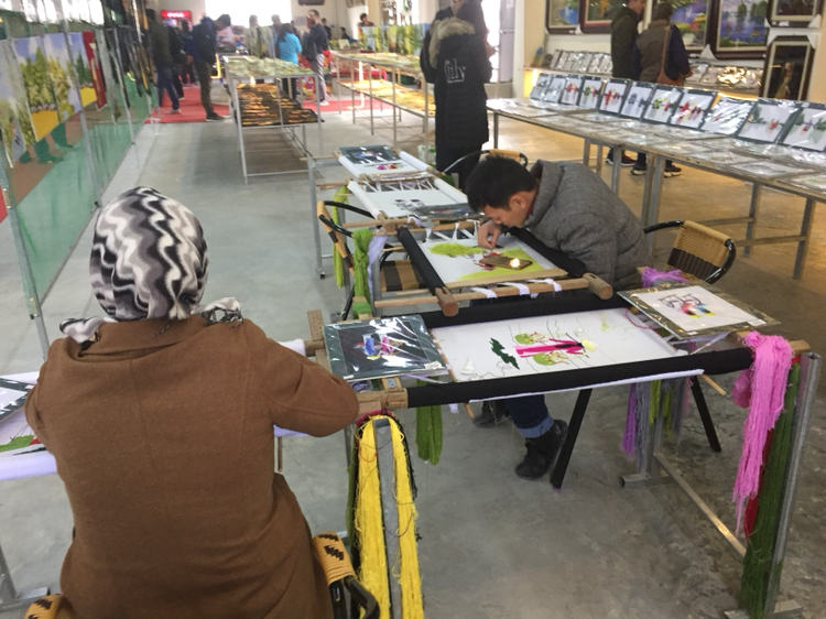 남자가 집중해서 실로 자수를 하는 중이다. 완성된 작품을 파는 것은 물론 바로 이 상점 안에서 제작도 하고 있는 것이다.