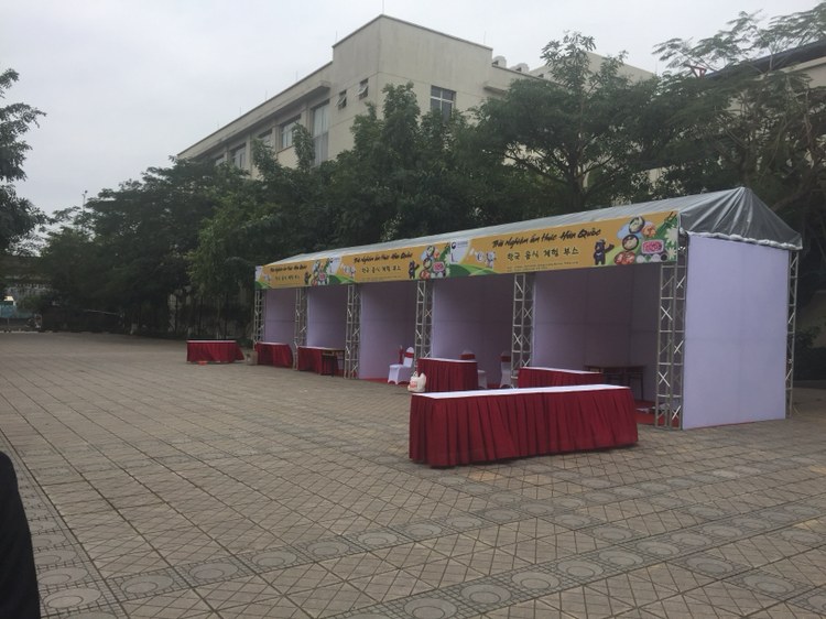 탕롱대학에서 한국 관련 행사가 열렸다. '한국 음식 체험 부스'라는 글씨가 보인다. 어디서든 한국에 대한 관심은 드높다.