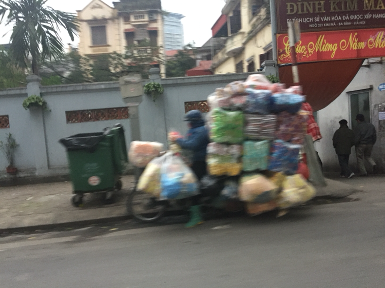 다시 하노이다. 오토바이에 엄청난 짐을 실었다. 경이적이다.