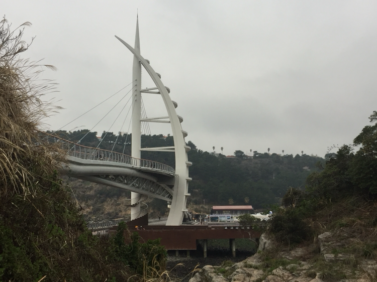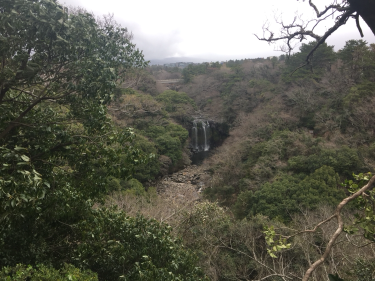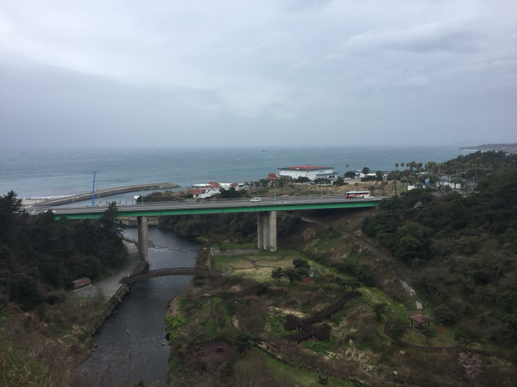 그곳은 중문천이 바다와 만나는 곳이기도 했다. 천제연폭포가 멀지 않다. 올레길8코스도 갈래길을 만난다. 곧장 바로 갈 수도 있고 가파른 언덕길 계단을 오를 수도 있다. 천제연폭포를 가려면 계단을 오르는 게 가깝다. 처음 계단은 매우 가파르지만 다 오르고 나면 그 후로는 평지 길이어서 걷기가 아주 편안하다. 점차 선임교가 가까워진다. 중문천 높이 걸린 다리다. 입체감이 굉장하다. 아래를 내려다보면 아찔할 정도니까. 가까이 다가가서 볼 수 있는 천지연폭포와 달리 천제연폭포는 어디에 있는지조차 잘 분간하기 힘들었다. 선임교를 건너 여미지식물원 앞으로 빠져나왔다.