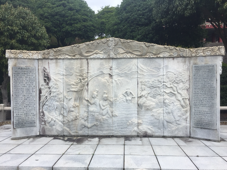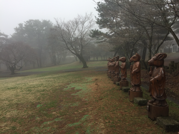 12간지를 나타내는 동물들의 상이 서 있다. 그저 얼굴만 다를 뿐이다.