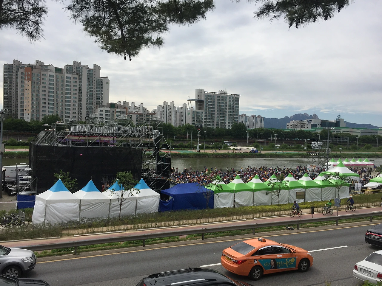 중랑천 넓은 공간에서 관현악단의 연주곡이 다르고