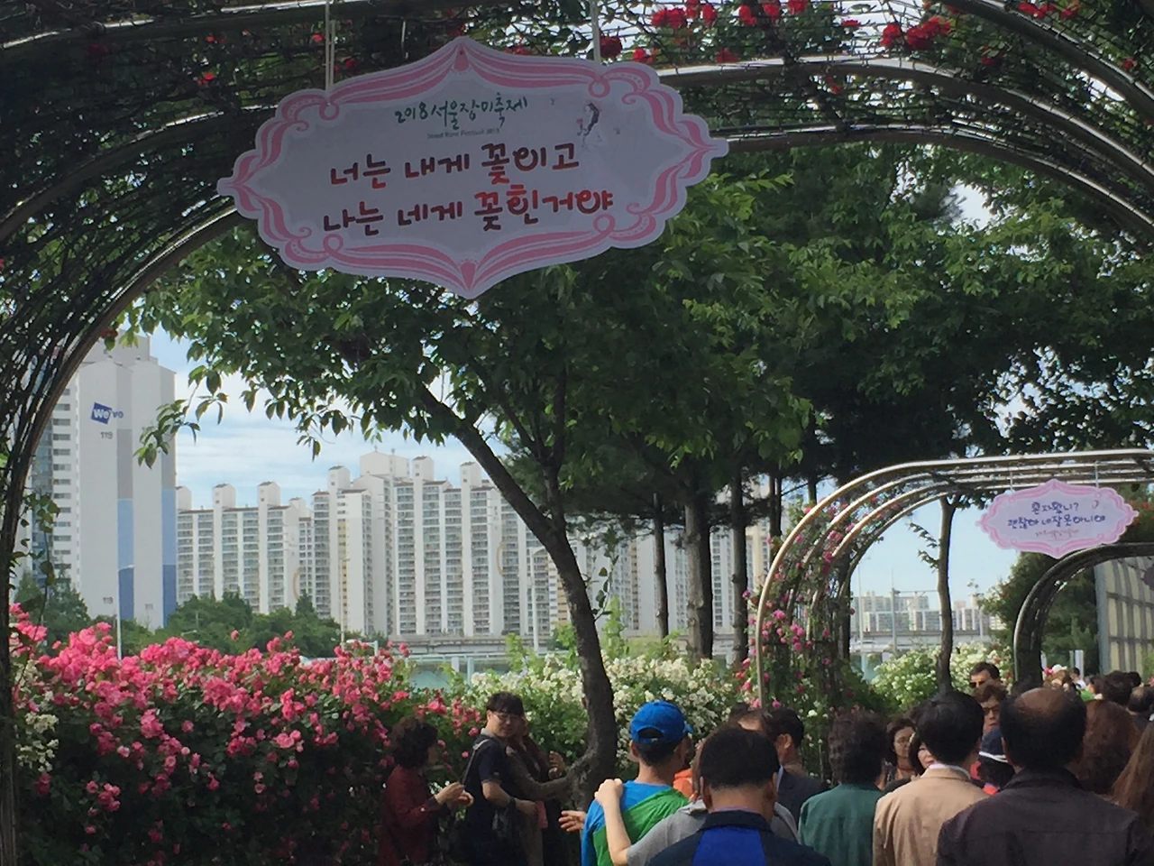 장미꽃이 만발한 중랑천의 인파 속에 파묻혀 보았다.