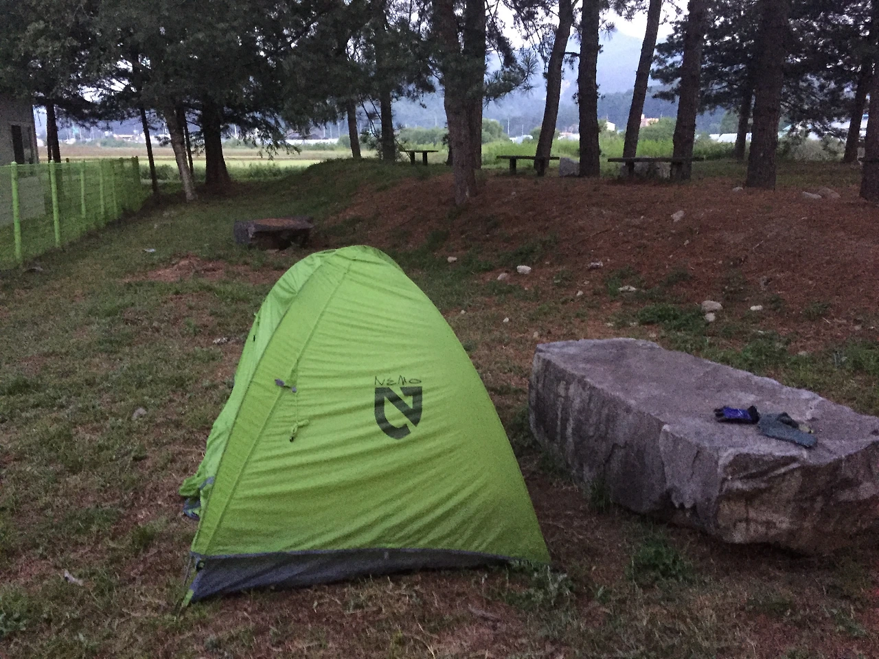 자전거도 바퀴가 작은 걸로 바꾸고 등에는 텐트가 든 배낭까지 짊어졌다.
