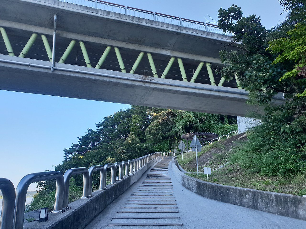 다리를 건너서 능내역 방향으로 향했다. 봉안터널도 지나 팔당의 국수집 앞을 통과해 팔당대교를 건너 한강 남쪽으로 내려왔다. 고개를 들어 팔당대교를 올려다 보니 방금 내가 지나온 그곳을 많은 자전거가 지나고 있었다.