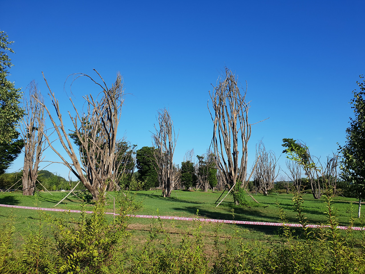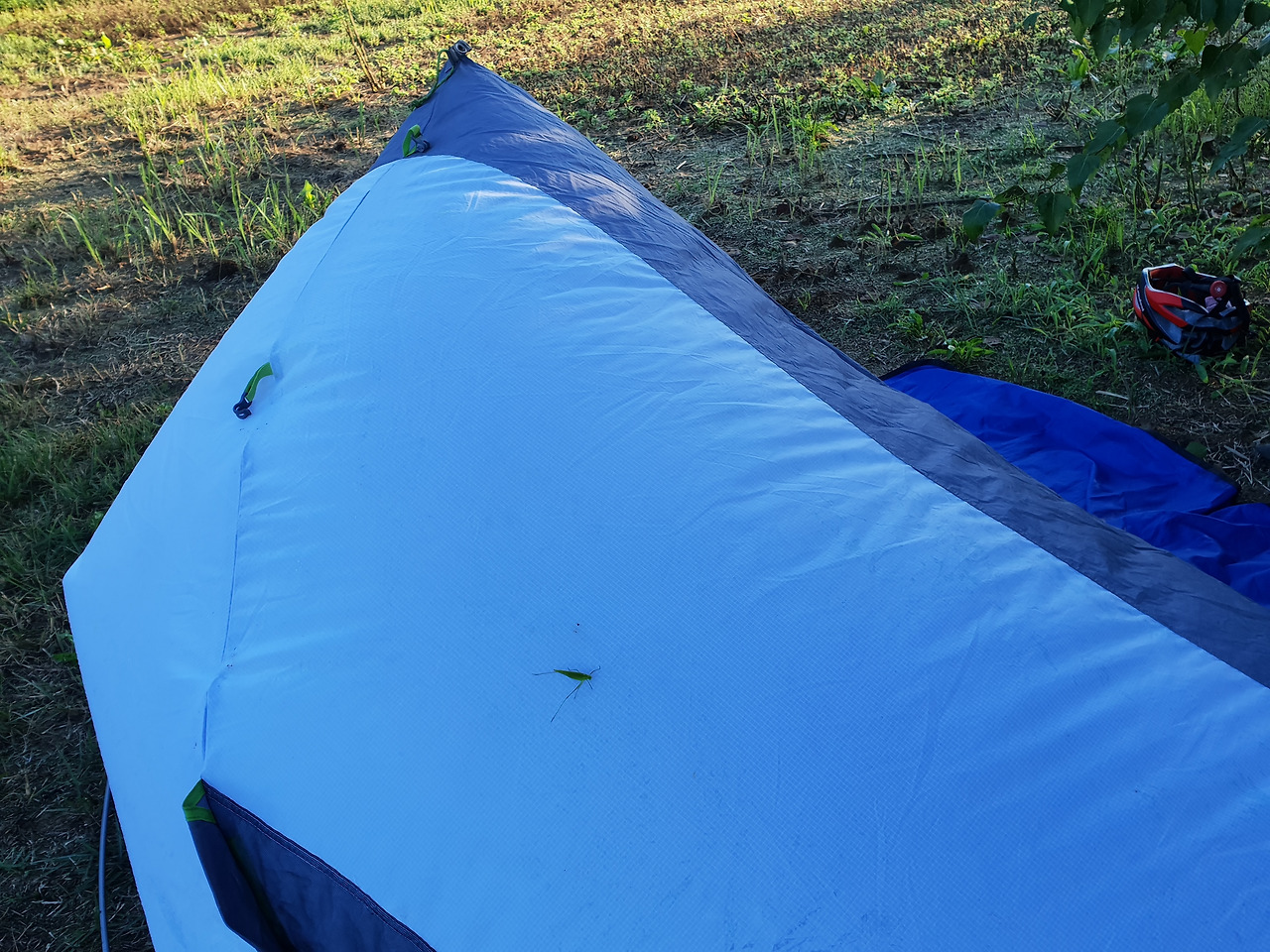 어둠속에서 텐트 칠 곳을 두리번거리며 찾았다. 잔디밭이 하도 넓어서 칠 곳은 널려 있었다. 텐트들이 적당한 간격을 유지한 채 곳곳에 서 있었다. 대체로 나무 아래에 자리를 잡고 있었고 운동장처럼 드넓은 잔디 한가운데는 텅 비어 있었다. 나도 어느 나무 아래에 자리를 잡았다. 산 지 1년이 되고 보니 텐트를 치는 게 이젠 식은 죽 먹기다. 그동안 참 많이도 써먹었다. 익숙한 솜씨로 폴을 연결하고 골격을 완성했다. 플라이를 덮어 씌웠다.