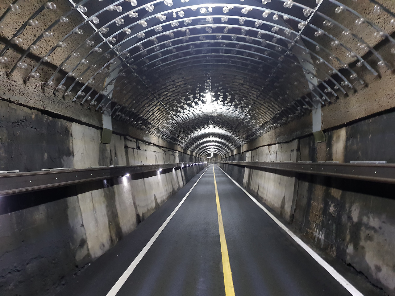 양수역 앞을 지났다. 이 역을 지날 때 초행인 사람들은 길을 놓치기 쉽다. 큰길로 가면 안 되고 역 바로 앞으로 올라와야 남한강자전거길을 놓치지 않는다. 양수역을 지나면 아기자기한 터널들이 많다. 처음 나타나는 용담아트터널이 특히 화려하다. 터널 내부의 조명이 환상적이어서 '아트'란 말이 아깝지 않다. 용담터널을 나오면 부용4, 부용3, 부용2, 부용1 터널이 계속 나타난다.