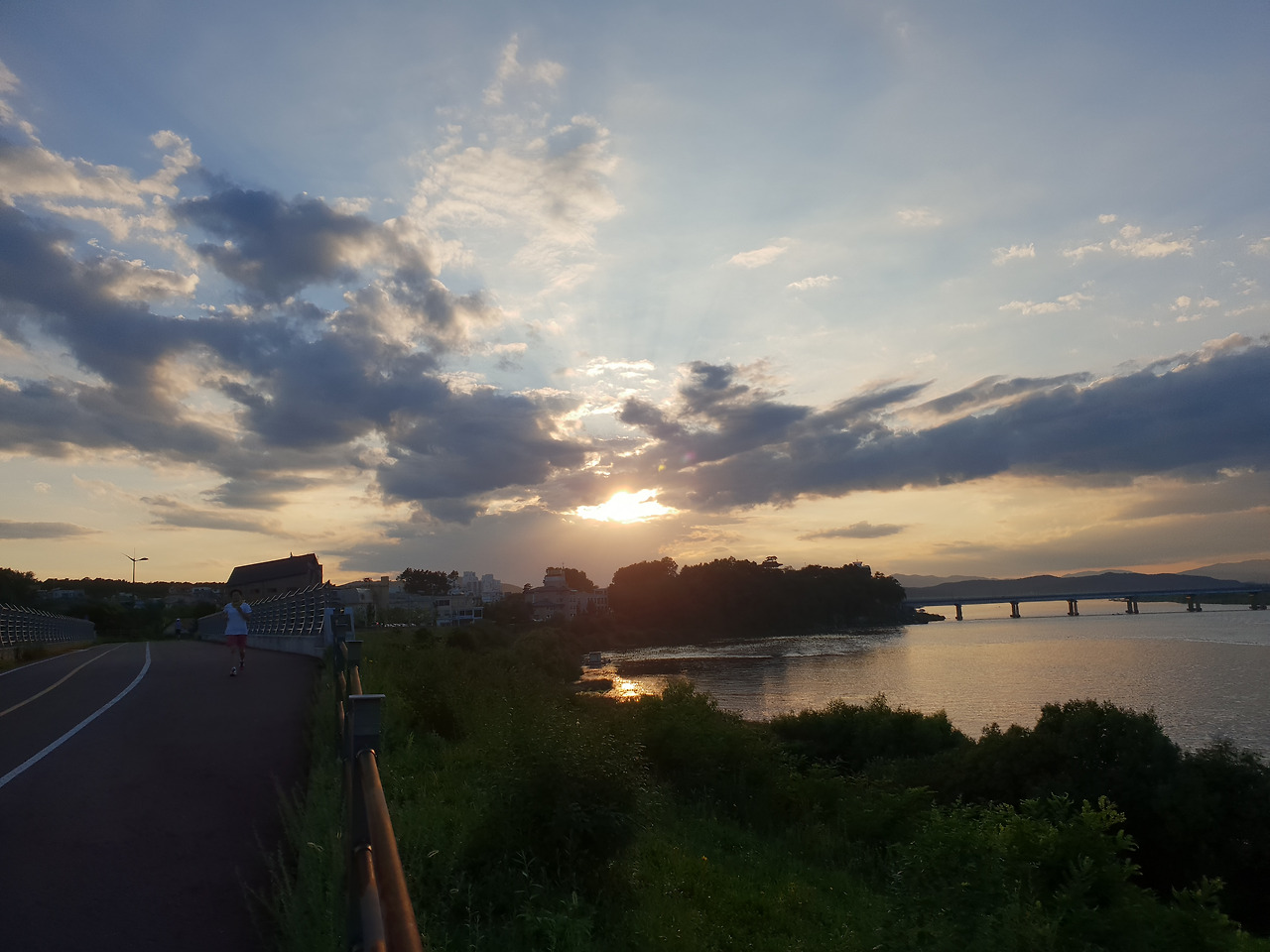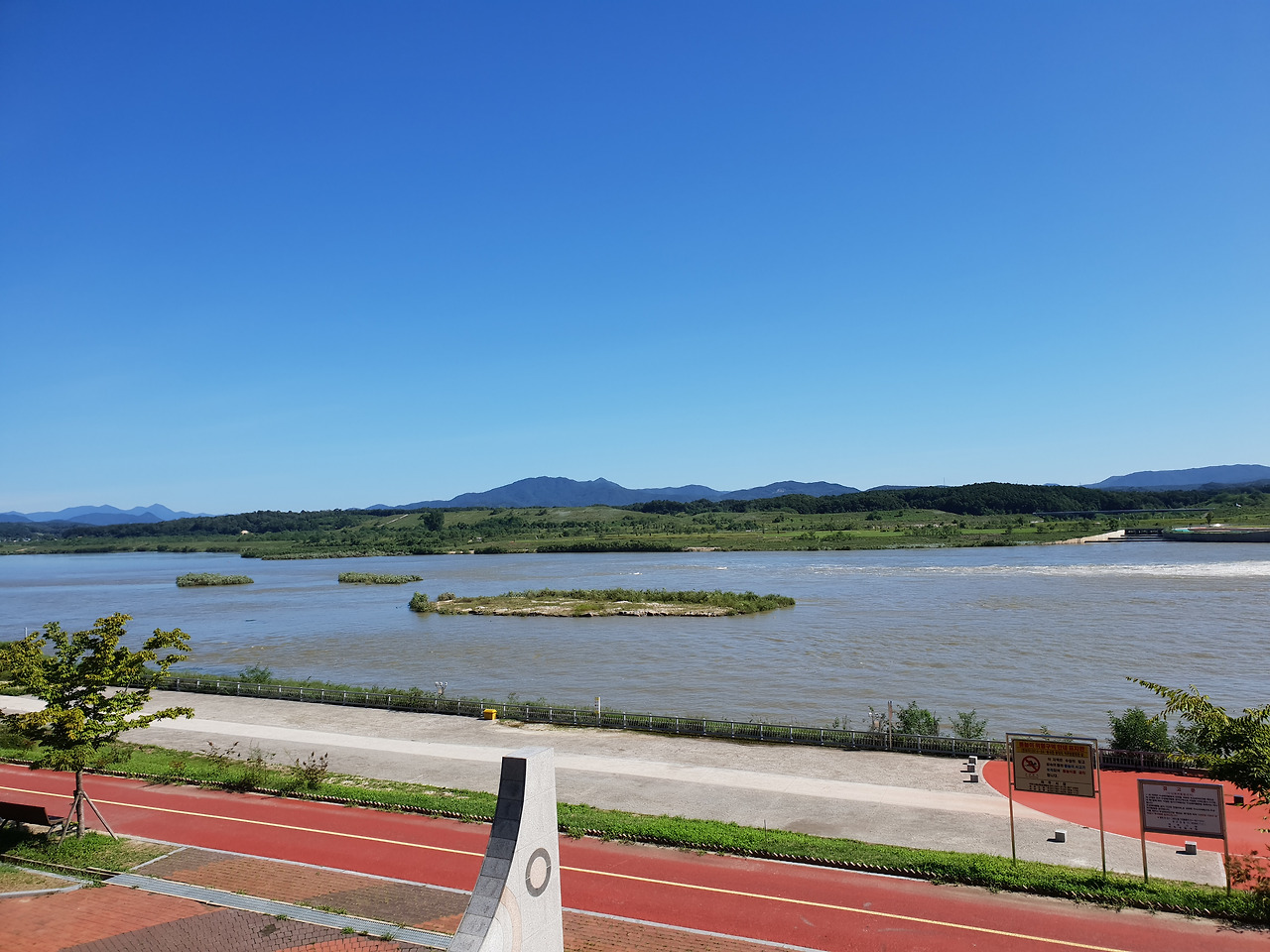 강천보를 건너 편의점이 있는 2층으로 올라갔으나 문이 굳게 닫혀 있었다. 물을 사 먹고 싶었지만 그냥 돌아나와야 했다. 연양지구공원을 지났다. 남한강 바로 옆에 대단히 넓은 강변 공원이 펼쳐져 있었다. 차들이 이따금 지나갔다. 자동차가 접근할 수 있다는 뜻이다. 여주 시내에서 가까운 곳이 녹지가 여간 많지 않다. 금은모래캠핑장 앞에 와서야 갑자기 부산해졌다. 사람들이 꽤 많았다. 아침을 먹기 위해 식당을 두리번거렸으나 문 연 곳은 없었다. 결국 아침식사는 여주 시내에 가서 하는 수밖에 없었다. 여주 시내에 들어가서도 문 연 식당을 발견하기는 쉬운 일이 아니었다. 결국은 식당 찾기를 포기하고 편의점으로 들어갔다. 도시락을 사서 데운 뒤 물과 함께 먹었다. 그런 대로 괜찮은 아침식사를 했다.