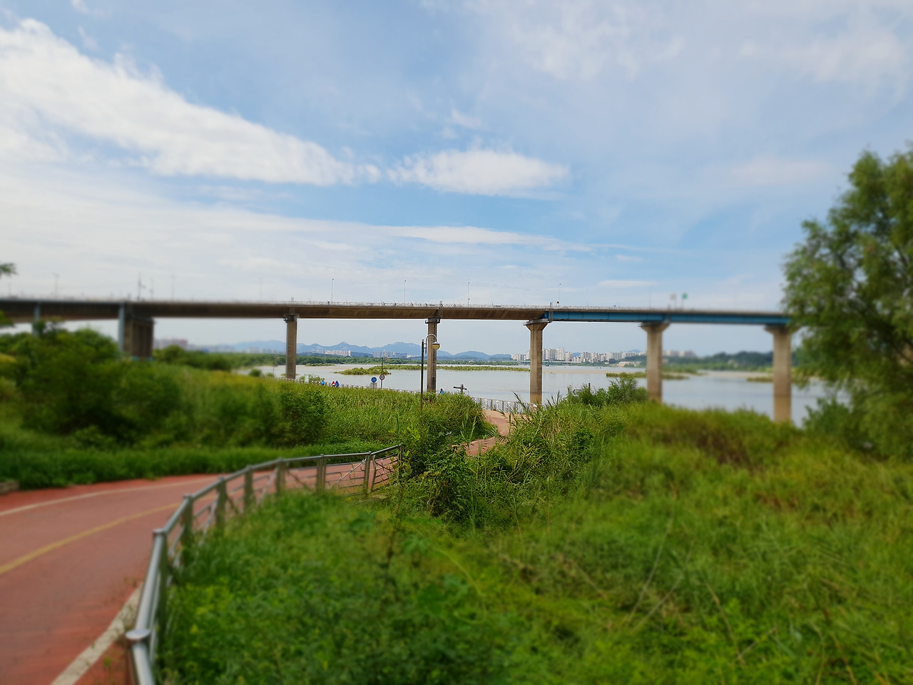 집을 나서면 안양천이다. 자전거길이 잘 나 있다. 너무나 익숙한 길이다. 어느새 한강합수부에 이르렀고 많은 사람들이 거기 모여 쉬거나 한강 모습을 즐기고 있었지만 잠시도 지체 않고 계속 달렸다. 성산대교, 양화대교 지나니 여의도다. 서강대교, 마포대교, 원효대교도 차례로 지났다. 한강철교와 한강대교를 지나면 약간의 오르내리막이 이어진다. 그걸 지나 넓은 데로 나왔다. 동작대교와 반포대교, 한남대교, 동호대교를 지나면 야트막한 언덕이 있고 성수대교와 청담대교, 영동대교를 지나 탄천과 한강이 만나는 곳까지 이르렀다.