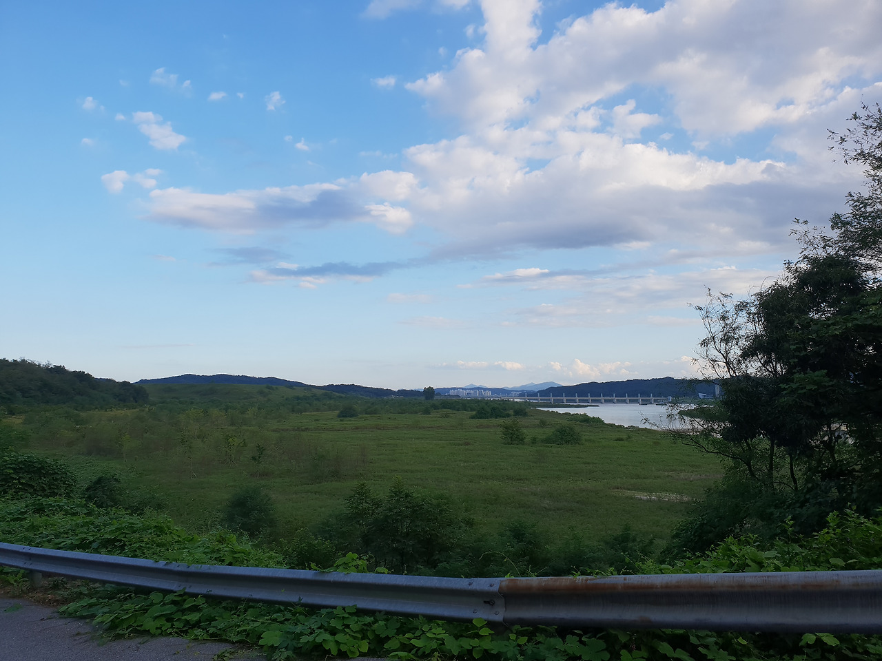 역시 쉬지 않고 계속 달렸다. 출발한 지 2시간도 더 지났을 것이다. 잠실대교와 잠실철교, 그리고 올림픽대교... 암사대교를 지나며 가파른 언덕이 처음으로 나타난다. 제법 길다. 하지만 자전거에서 내려야 할 정도는 아니다. 내리막은 또 얼마나 시원스러운가. 고덕천교도 지나니 이젠 강동대교다. 이 다리는 외곽순환고속도로의 일부다. 그리고 얼마 더 가면 서울시와 하남시의 경계가 나타나면서 웬 야구장이 그리도 많은지! 그 야구장들을 지나 좀 더 달리면 미사대교 밑을 지나는데 미사대교는 경춘고속도로의 일부다. 이제 미사리의 기나긴 지루한 도로를 달린다. 변화가 없으니 마냥 멀게만 느껴진다. 저 멀리 우뚝 공항 관제탑 같은 게 보인다. 하남시에서 세운 명물이 아닐까 싶다. 이제 드디어 팔당대교 밑을 지난다. 꽈배기처럼 난 길을 올라 드디어 팔당대교 위를 올라가고 그 다리를 건넌다. 하남시에서 남양주시로 넘어왔다.