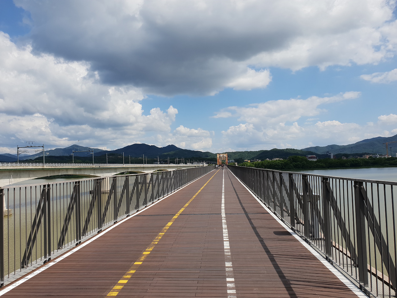 옛 중앙선 기찻길이었던 곳이 이젠 남한강자전거길이다. 철길은 다 걷혔지만 옛 철교의 흔적이 조금은 남아 있다. 토요일인데 이 다리 위를 지나는 자전거 행렬이 생각보다 적다. 주말엔 늘 붐볐던 걸로 기억되는데...