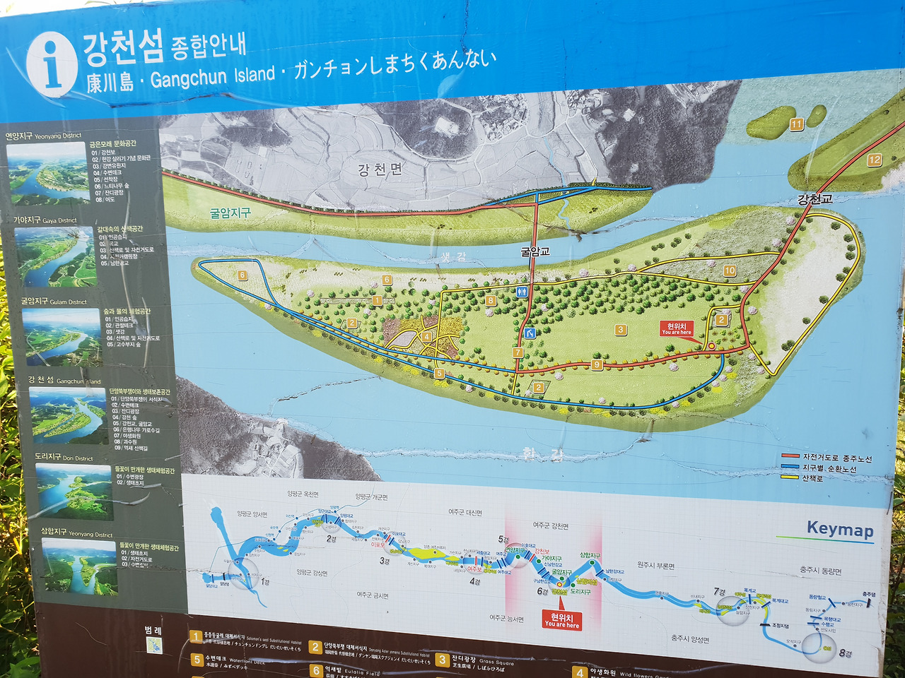 다리를 건너니 그곳은 당남리섬이었다. 강천섬이 강에 생긴 섬이듯이 당남리섬도 마찬가지였다. 그리고 그곳은 '경관농업단지'였다. 야영장은 보이지 않았고 와서 구경하고 쉬다 갈 수 있게 꾸며 놓았다. 지도에는 '가족피크닉존'이라 표시되어 있었고... 당남리섬을 나왔다. 이포보가 가까이에 있었다. 이포보를 통과해 양평읍을 향해 꾸준히 달렸다.