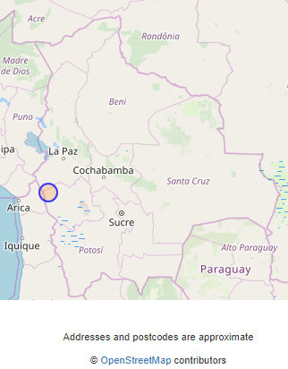 사하마산은 눈으로 덮여 있다. 칠레와의 국경과 아주 가까운 곳에 위치한다.