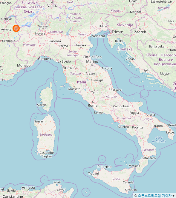 몽블랑산은 이탈리아 북서쪽 프랑스와의 국경에 있다.