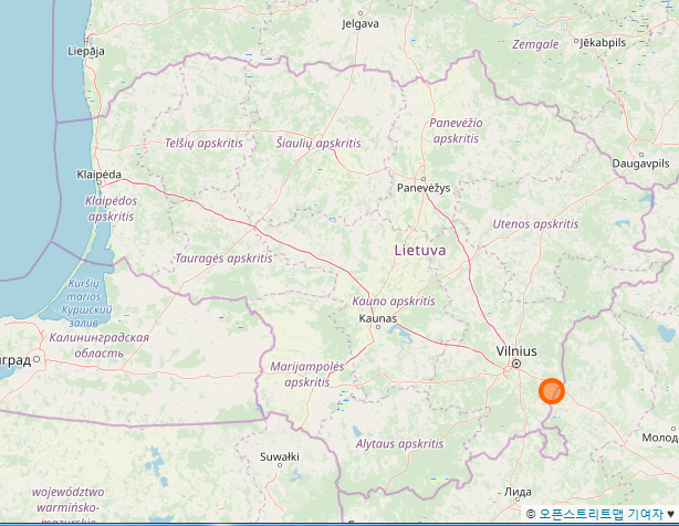 아욱슈토야스산은 리투아니아의 남동쪽 벨라루스와의 국경에서 그리 멀지 않은 곳에 있다.