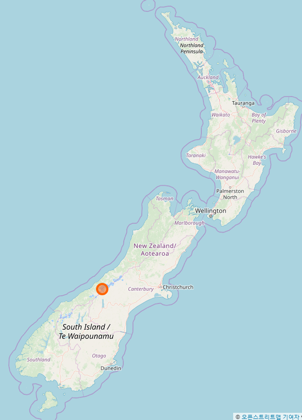 쿡산은 뉴질랜드 남섬의 중부 지역에 있다.