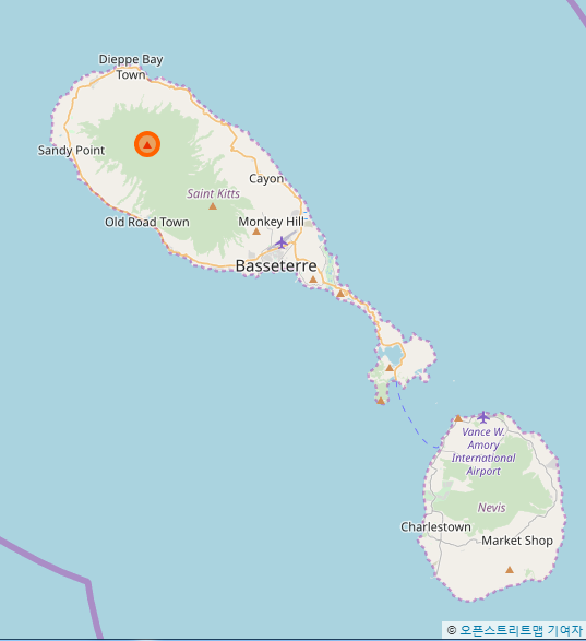 리아무이가산은 세인트키츠네비스의 두 섬 중 큰 섬인 세인트키츠섬에 있다.
