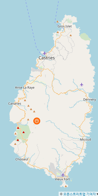 기미에산은 세인트루시아의 남서부에 있다.