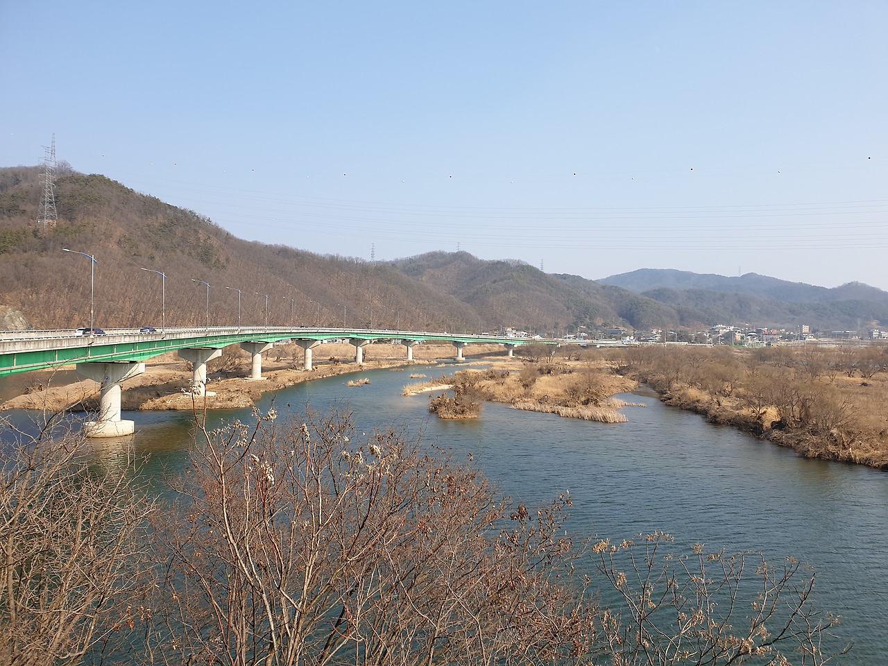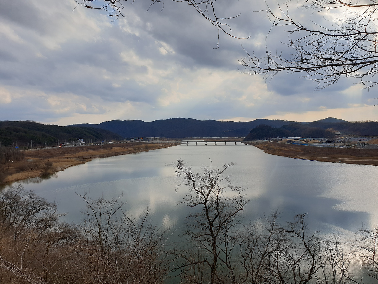 서서히 옥동을 빠져나왔다. 복주초등 옆을 지나 삼거리에서 좌회전한 뒤 큰길에 이르러 다시 좌회전했다. 멀리 새로 건설되는 기찻길이 보였다. 펼쳐진 낙동강이 유유히 흐르고 있었다. 경치에 넋을 잃었다. 학가산이 멀리 바라다보였다.
