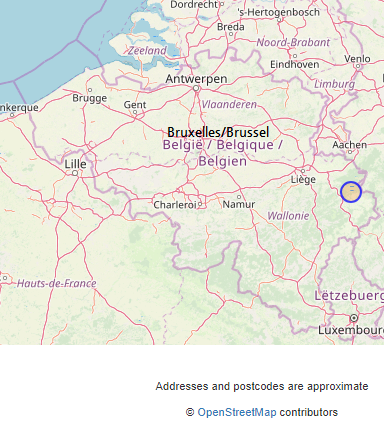 시냘드보트랑주산은 벨기에 동부 독일과의 국경 가까운 곳에 있다. 벨기에 수도 브뤼셀에서 약 153킬로미터 떨어져 있다. 리에주(Liege)와 베르비에르(Verviers)를 거쳐서 가는 것이 보통이다. 자동차 길 바로 옆에 있다.