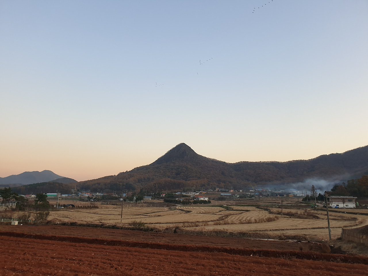 전등사로 가기 위해 드넓은 초지로를 달렸다. 벌판의 새떼가 장관이었다. 수확이 끝난 논에 새들이 새카맣게 앉아 있었다. 만일 총성이라도 나면 그 많은 새들이 일제히 솟아 오를텐데 그런 소리가 나주지 않는다. 그 장면을 사진 찍으면 좋으련만... 기다리다 할 수 없이 길을 재촉해야 했다. 길상산을 곤돌라가 오르내리고 있었다.