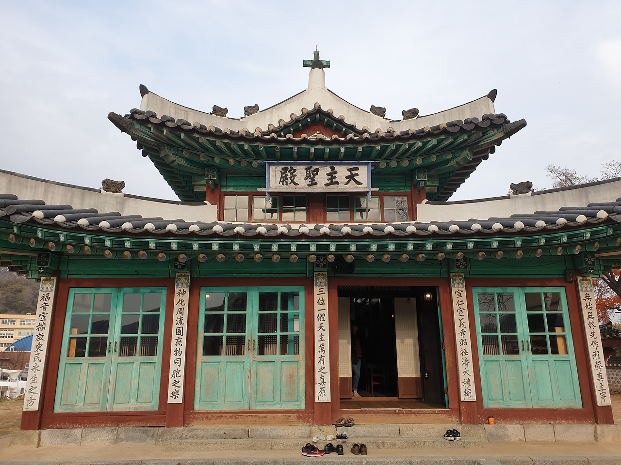군청 앞을 지나고 용흥궁공원에 이르렀다. 김상용 순절비가 세워져 있었다. 이조판서, 우의정을 지내고 병자호란 때 자결한 이다. 용흥궁은 철종이 살았던 집이다. 궁궐처럼 크진 않으나 기와집이 여러 채였다. 용흥궁 북쪽 성공회강화성당에 들어가서 내부를 둘러보았다. 한옥성당이 이채로웠다.