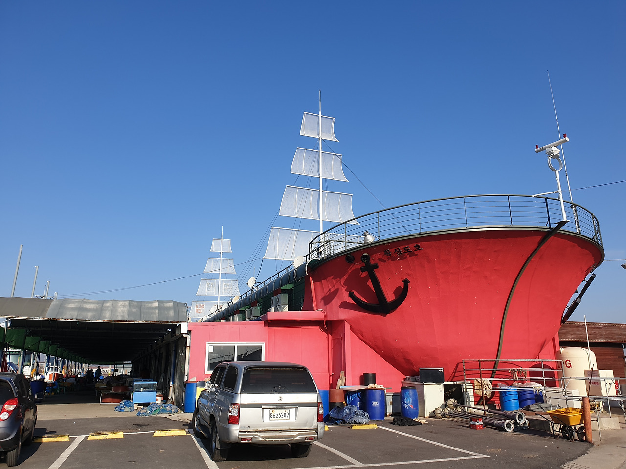 선원면 소재지를 지나 찬우물고개삼거리에 닿았다. 중앙로를 따라 가다가 편의점에서 비빔밥 도시락을 사서 아침을 먹었다. 젊은 주인이 손수 렌지에 데워주었다. 안양대강화캠퍼스 맞은편에 강화교육지원청이 있었다. 강화아르미애월드 앞도 지났다. 인산저수지 앞도 지났는데 배 모양의 레스토랑이 우뚝 서 있었다.