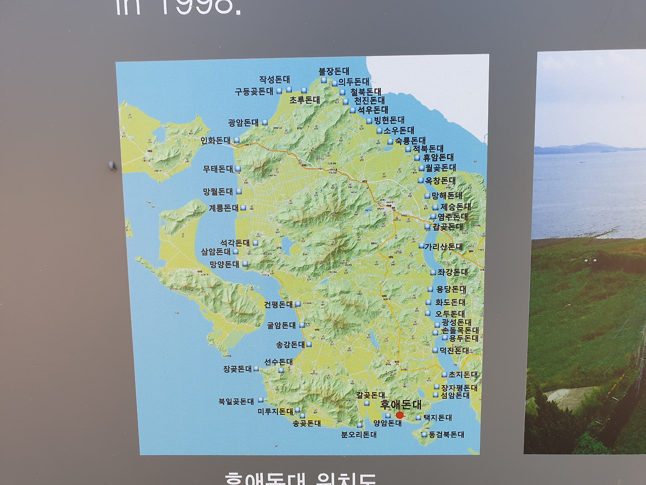 불은면에 이르렀다. 길상면 온수리에 비하면 조용하기 그지없었다. 이제 동쪽 해안으로 간다. 불은초등 앞을 지나 한적하기 그지없은 벌판 농로를 달렸다. 벌판 끝에 오두돈대가 있었다. 돈대에 올라가 보니 멀리 광성보쪽이 보였다. 오두는 鰲頭고 鰲는 자라다. 지형이 자라머리 모양처럼 생겼다 해서 붙은 지명일 것이다.
