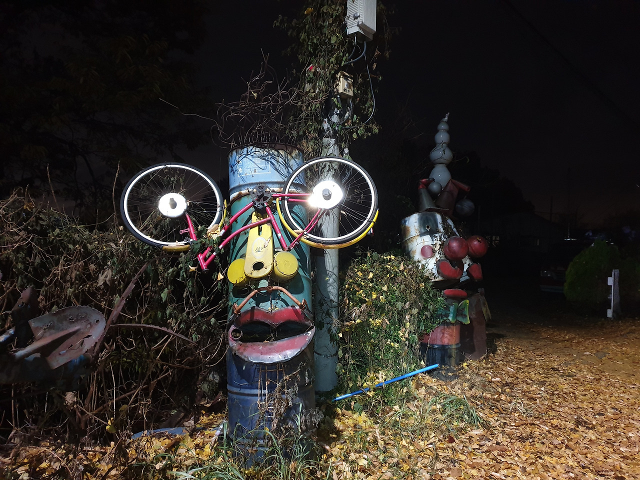 이강교차로에서 식당이 눈에 띄길래 부대찌개로 점심을 먹었다. 비가 내리기 시작했다. 편의점에서 비옷을 샀다. 이제 하점면 소재리로 간다. 그런데 길을 잘못 들었다. 48번국도로 올라서니 빠져나가는 길이 없다. 패였다. 고속도로나 진배없다. 할 수 없이 다음 교차로에 가서야 빠져나올 수 있었다. 하점면에도 벽화가 눈에 띄었다.