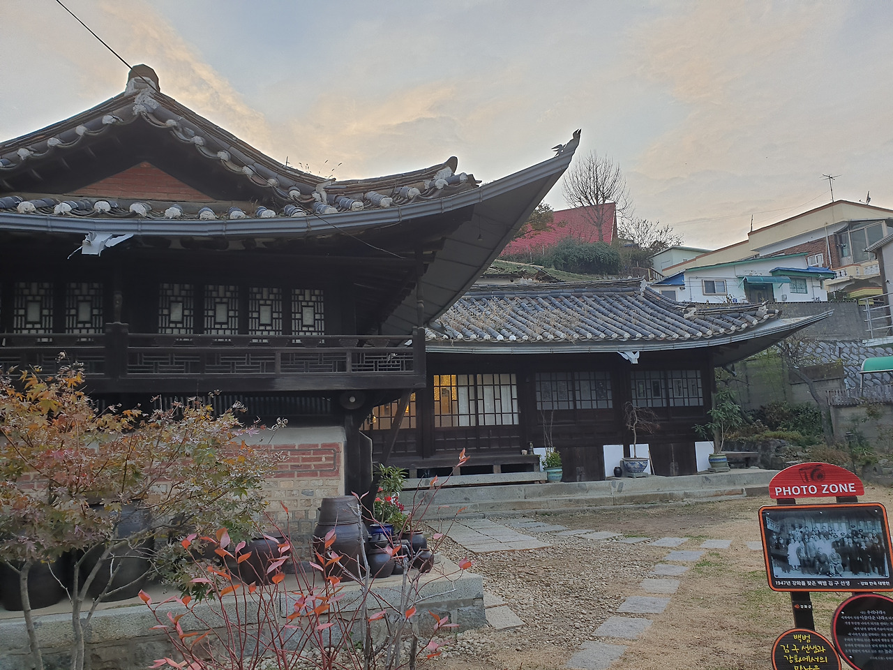 연무당옛터를 지났다. 1876년 강화도조약이 체결됐던 자리라는데 건물은 없이 터만 있다. 저녁 먹을 데를 찾아 강화중앙시장 부근 골목을 누볐다. 강화남문까지 갔다. 1930년대에 김구 선생이 방문했다는 고택이 있어 들어가보았다. 저녁은 군청 부근의 식당에서 보쌈정식으로 했는데 만족스러웠다.