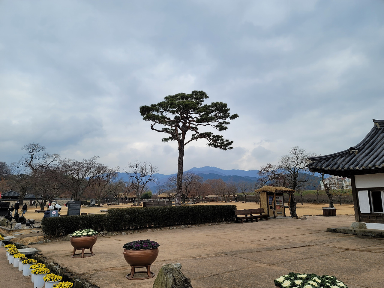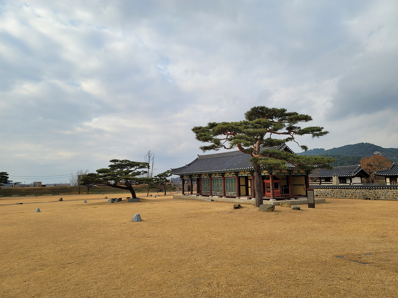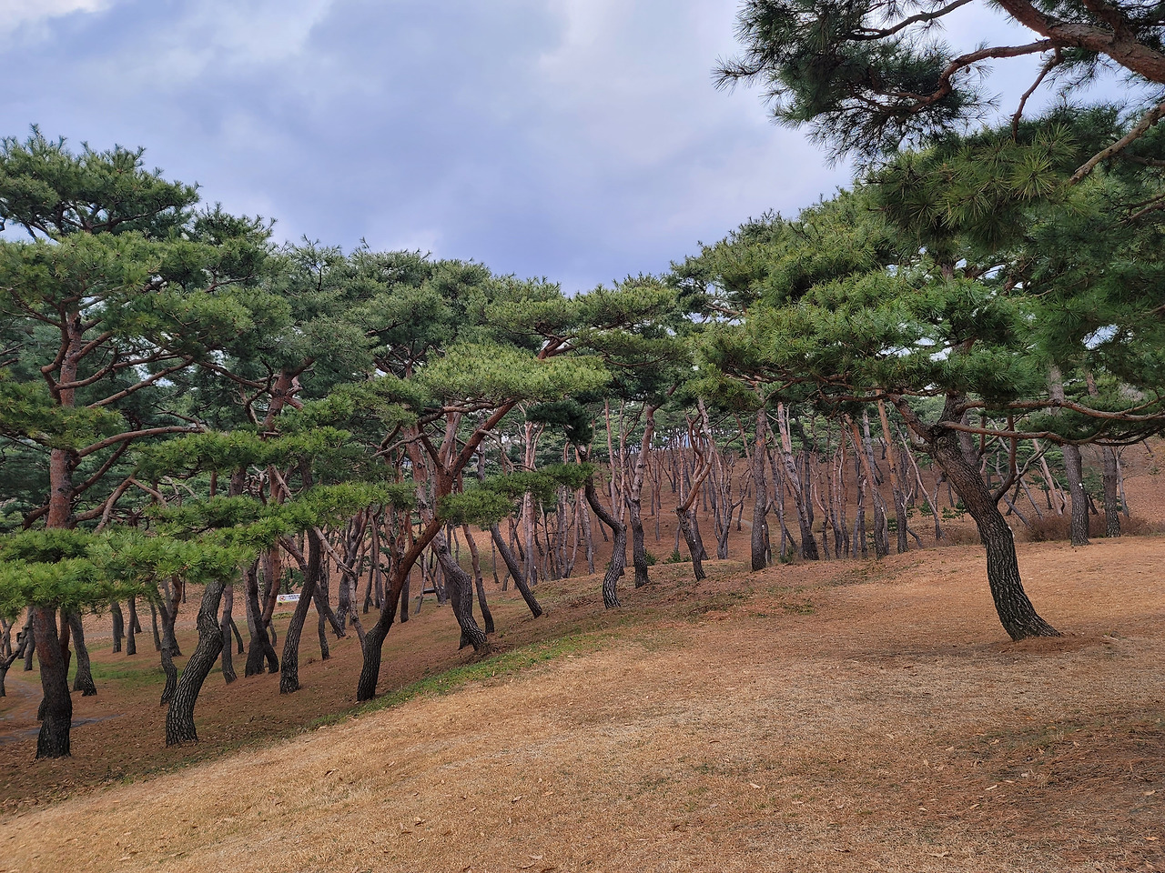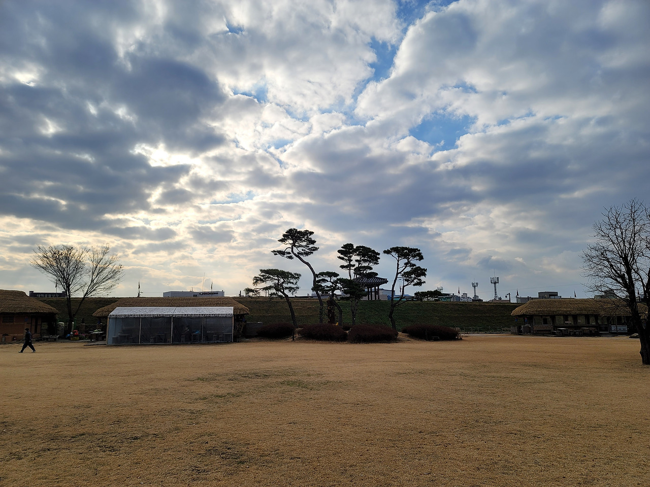 해미읍성은 홍성에서 본 좀 어수선했던 홍주성과는 사뭇 달랐다. 훨씬 더 넓었고 깔끔하게 잘 단장이 되어 있었다. 곳곳에 초가집이 있어서 마치 민속촌에 온 느낌이었다. 이렇게 넓은 잔디밭을 본 기억이 별로 없었다. 서서히 걸음을 북쪽으로 향했다. 우람한 건물의 동헌에 이르르니 돌계단이 있기에 계단을 올라가보았다. 언덕 위에 청허정(淸虛亭)이 있었고 울창한 소나무숲이 그곳에 있었다. 볼것이 많았고 사진 찍고 싶은 장면이 곳곳에 널려 있었다. 동헌 옆 객사 앞의 소나무는 참 묘하게도 생겼다.
