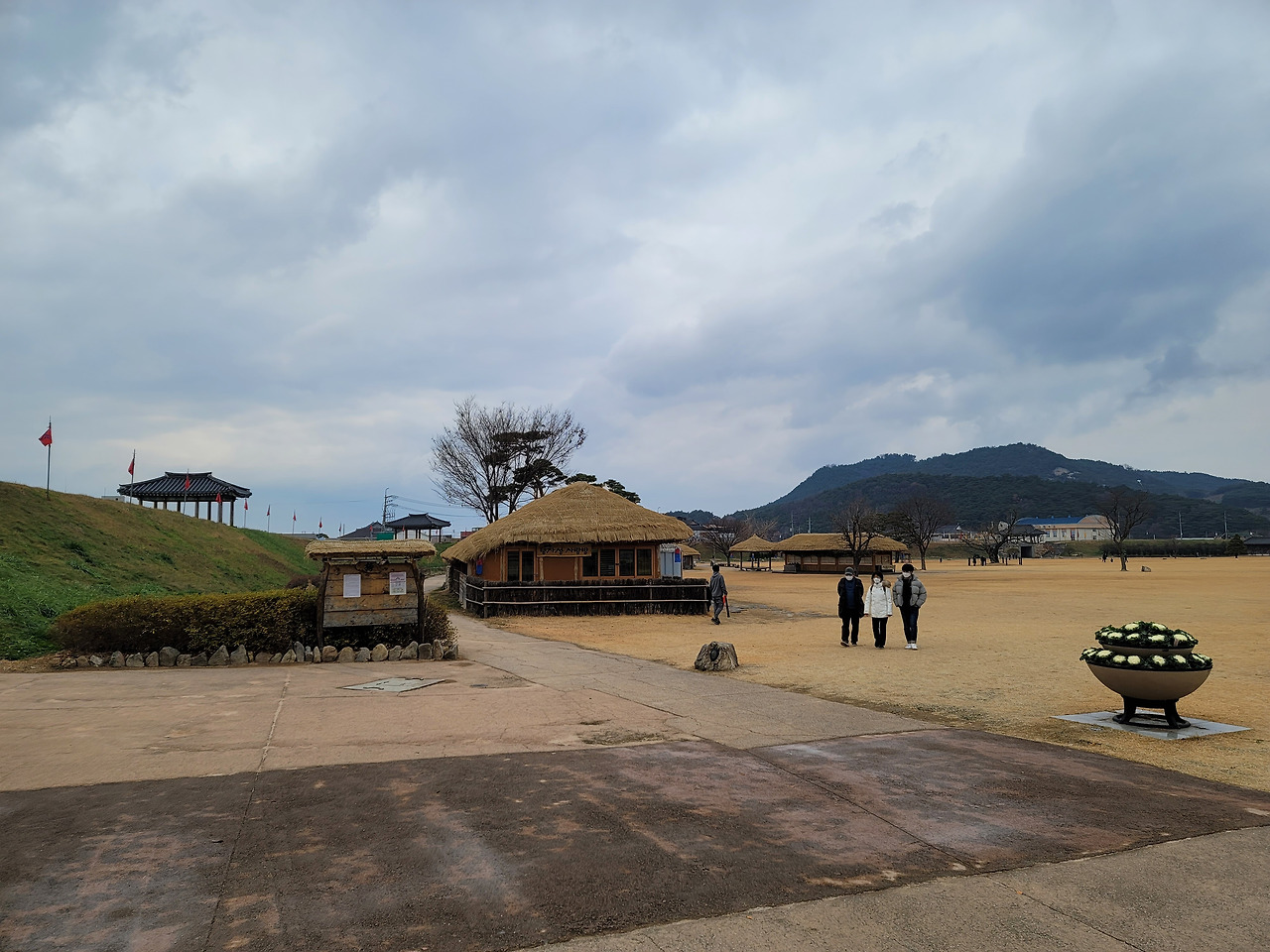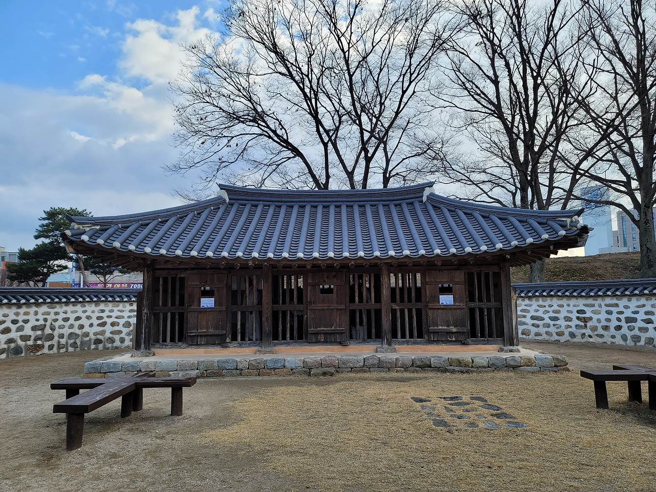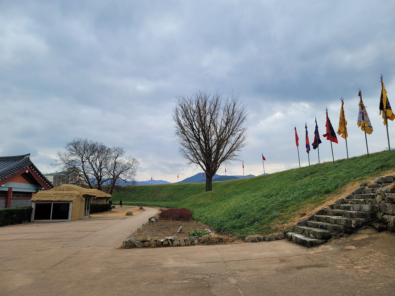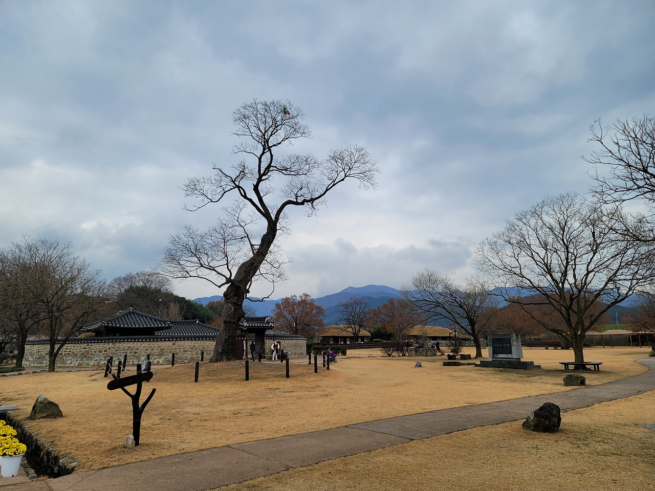 해미읍성은 홍성에서 본 좀 어수선했던 홍주성과는 사뭇 달랐다. 훨씬 더 넓었고 깔끔하게 잘 단장이 되어 있었다. 곳곳에 초가집이 있어서 마치 민속촌에 온 느낌이었다. 이렇게 넓은 잔디밭을 본 기억이 별로 없었다. 서서히 걸음을 북쪽으로 향했다. 우람한 건물의 동헌에 이르르니 돌계단이 있기에 계단을 올라가보았다. 언덕 위에 청허정(淸虛亭)이 있었고 울창한 소나무숲이 그곳에 있었다. 볼것이 많았고 사진 찍고 싶은 장면이 곳곳에 널려 있었다. 동헌 옆 객사 앞의 소나무는 참 묘하게도 생겼다.