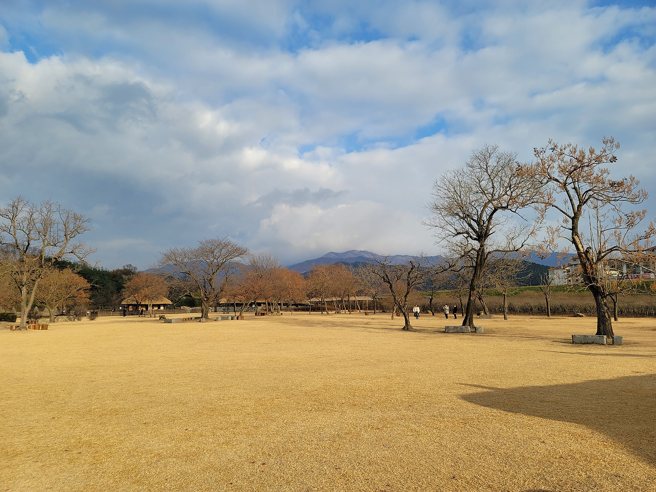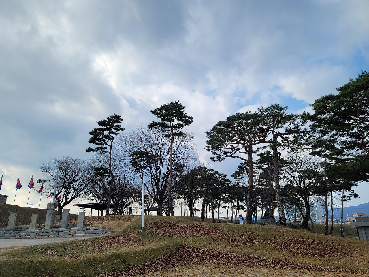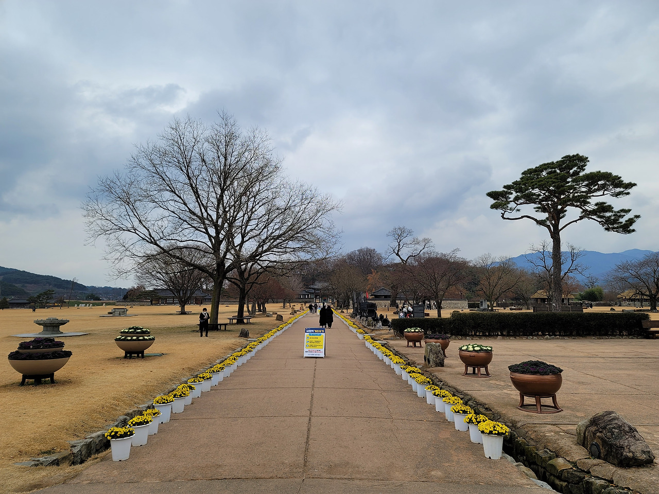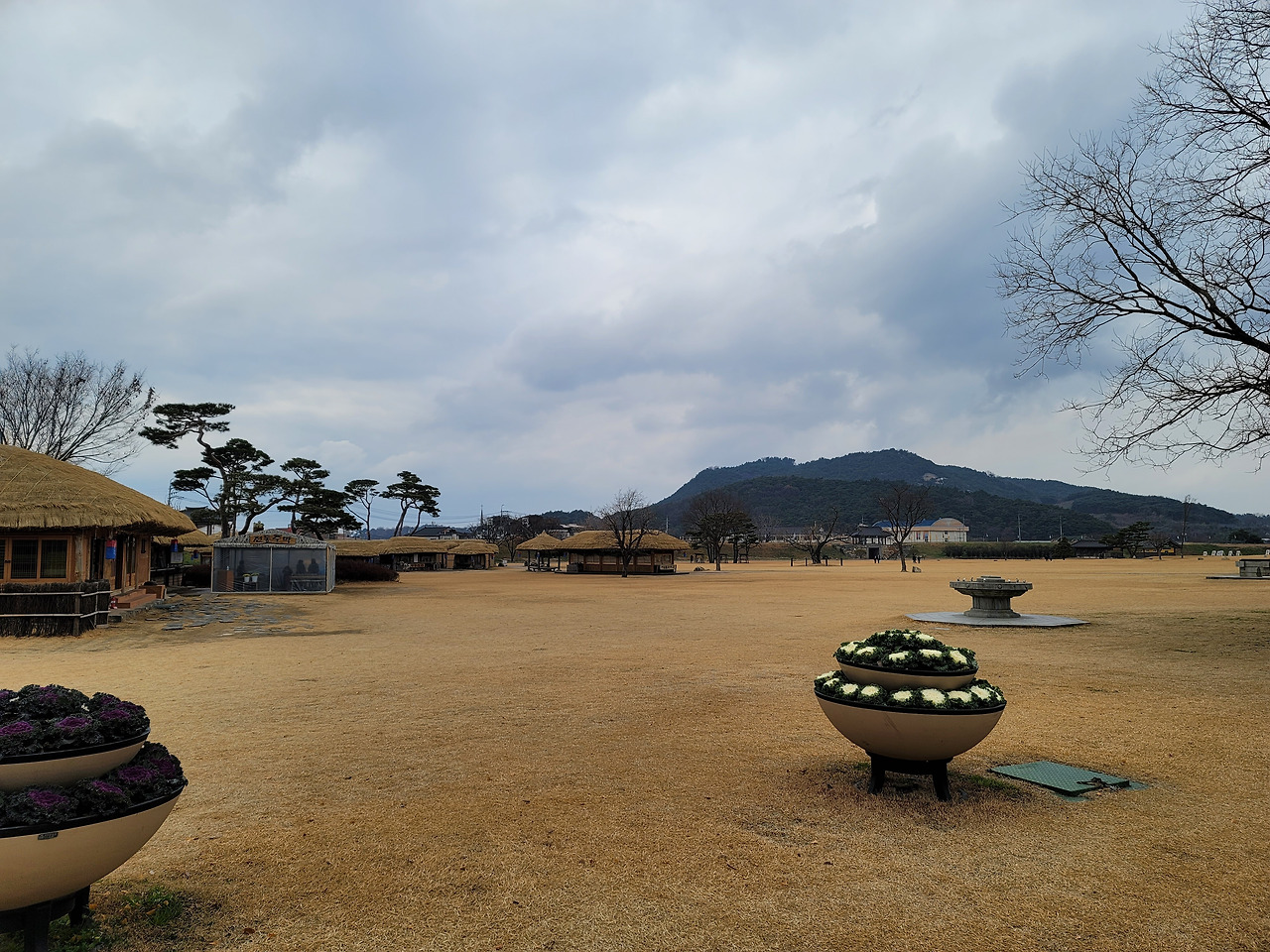 해미읍성은 홍성에서 본 좀 어수선했던 홍주성과는 사뭇 달랐다. 훨씬 더 넓었고 깔끔하게 잘 단장이 되어 있었다. 곳곳에 초가집이 있어서 마치 민속촌에 온 느낌이었다. 이렇게 넓은 잔디밭을 본 기억이 별로 없었다. 서서히 걸음을 북쪽으로 향했다. 우람한 건물의 동헌에 이르르니 돌계단이 있기에 계단을 올라가보았다. 언덕 위에 청허정(淸虛亭)이 있었고 울창한 소나무숲이 그곳에 있었다. 볼것이 많았고 사진 찍고 싶은 장면이 곳곳에 널려 있었다. 동헌 옆 객사 앞의 소나무는 참 묘하게도 생겼다.