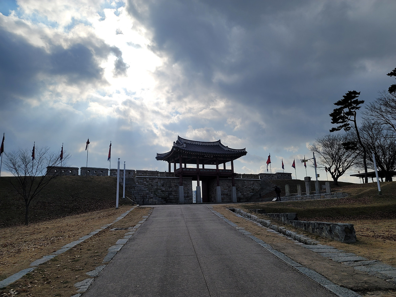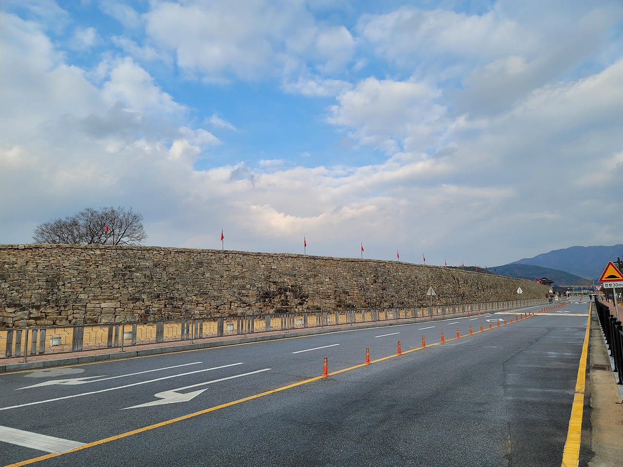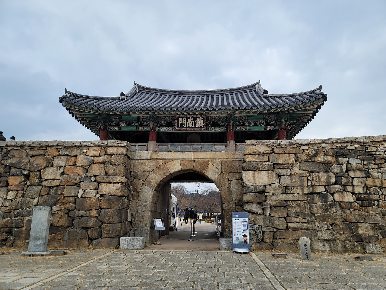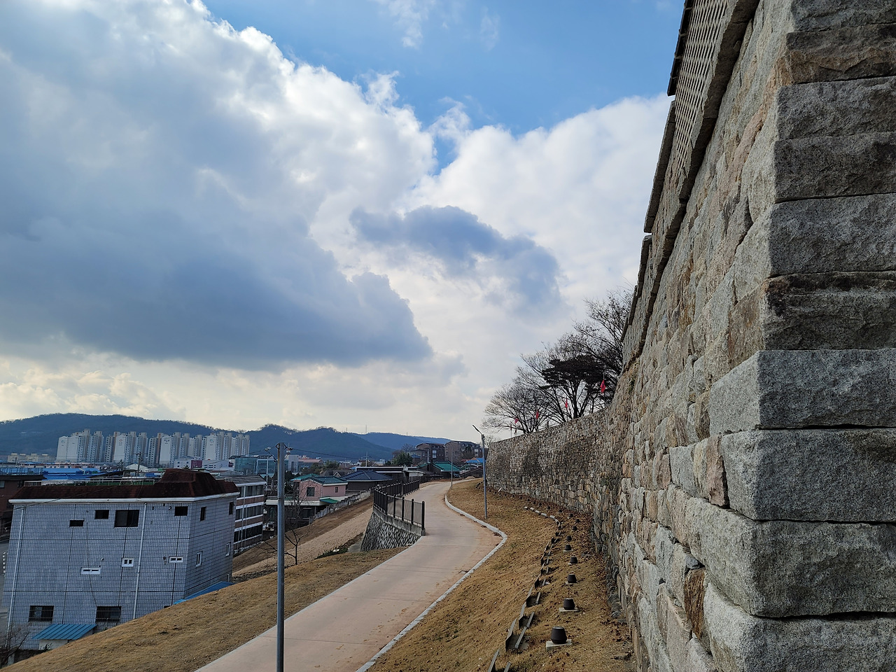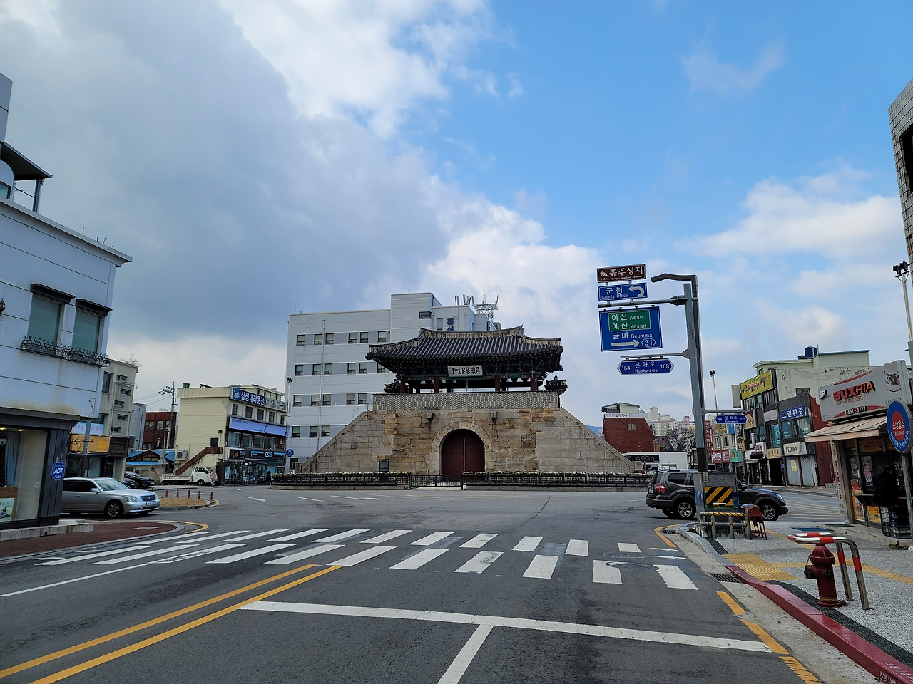 해미교차로에서 국도는 왼쪽으로 꺾였고 서산으로 가는 차들은 좌회전해야 했다. 나는 해미 시내로 갈 참이었으므로 교차로에서 직진했다. 해미교를 건너니 갑자기 거리가 활기를 띠었다. 음식점과 카페 간판이 부쩍 눈에 많이 띄었다. 그리고 어느새 해미읍성이 나타났다. 읍성의 남문인 진남문이 모습을 드러냈다.