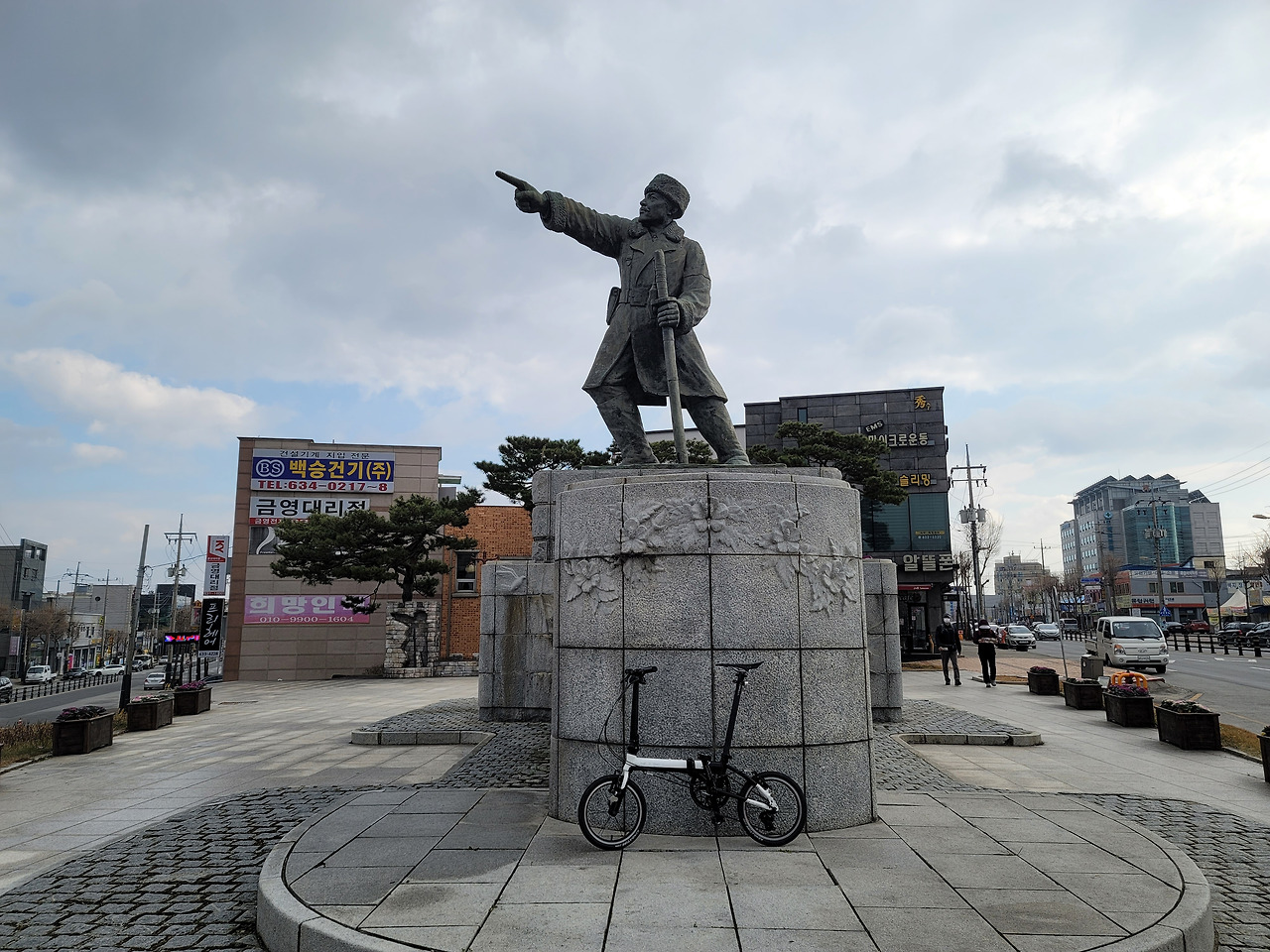 홍성역에서 시내 방향으로 줄기차게 직진해서 달리니 장군상오거리에 이르렀다. 오거리에 김좌진장군 동상이 서 있다. 보통 위인의 동상은 곧추 서 있는 모습이 보통인데 김좌진 장군 동상은 아주 달랐다. 약간 무릎을 굽히고 상체를 세운 채로 팔을 하늘을 가리키고 있는 독특한 모습이었다. 김좌진 장군은 1889년 홍성군 갈산면에서 태어났다. 1920년 10월 장군이 이끄는 군대는 청산리에서 일본군을 크게 무찔렀다. 매복 작전의 승리였다. 당시 홍범도, 이범석 등이 전투에 함께 참여했다. 이범석은 겨우 20세에 불과했고 홍범도 장군은 50이 넘었다. 김좌진 장군은 31세의 한창 나이... 장군은 불과 10년 뒤에 41세로 세상을 떠났으니 너무 일찍 죽었다. 그의 아들이 김두한이고 김두한의 딸이 김을동, 김을동의 아들이 송일국임은 세상이 다 아는 일이다.