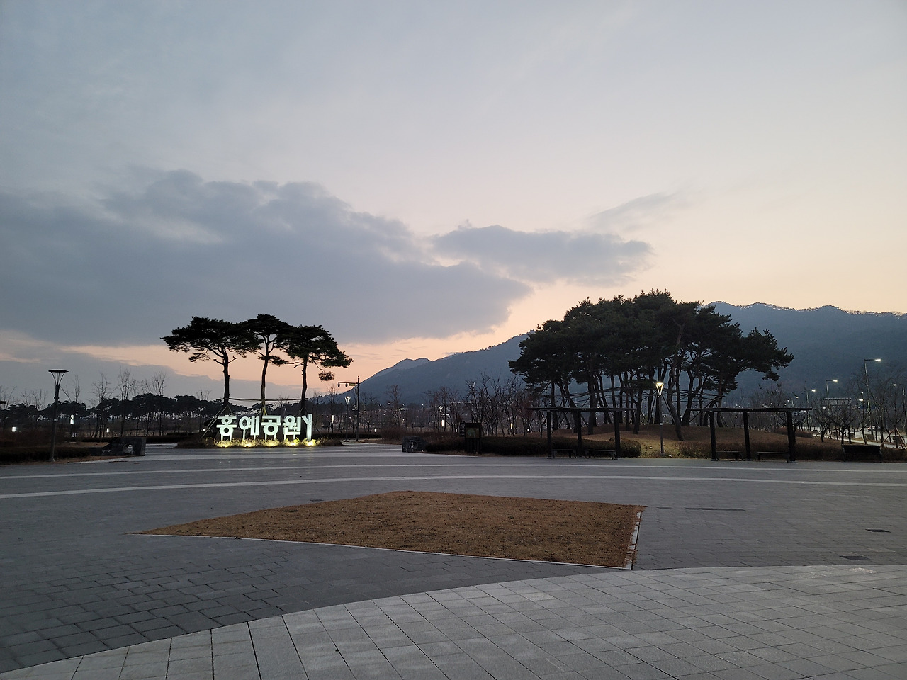 자로 잰 듯이 구획된 깔끔한 신도시가 나타났다. 왼편에 내포신도시고속.시외버스정류소라는 간이 건물이 서 있었고 그곳은 바로 충남도청 앞이었다. 내 눈길을 끈 곳은 도로 오른편에 펼쳐진 공원이었다. 홍예공원이었다. 홍예굥원은 수암산과 용봉산 아래에 펼쳐져 있는 대단히 넓은 공원이었다. 건물은 거의 없었고 오로지 멋진 디자인의 근사한 충남도서관이 있을 뿐이었다. 홍예공원을 걸어서 다 둘러보자면 한두 시간으로 되지 않을 것 같았다.