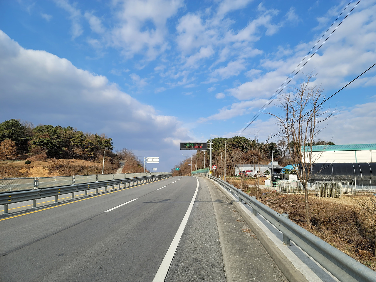 서해안고속도로 아래를 지나 상촌교차로도 통과해서 23번 국도를 계속 달렸다. 고개를 돌려 왼쪽을 보니 터널이 있었다. 임해터널이었다. 그리 길어 보이지는 않았다. 얼마 더 지나니 옹기마을이 있음을 알리는 표지판이 있었다. 갈산에서 해미로 가는 길은 대체로 평탄했다. 오르기 버거운 가파른 언덕은 없었다. 완만한 언덕이 두 군데 있을 뿐이었다. 홍성군 갈산면이 끝나고 서산시 고북면이 나타났다. 길은 더욱 평탄해졌다. 도로는 한껏 넓어졌고 차량은 드물게 달릴 뿐이어서 편안하게 달릴 수 있었다. 해미가 차츰 가까워지고 있었다.