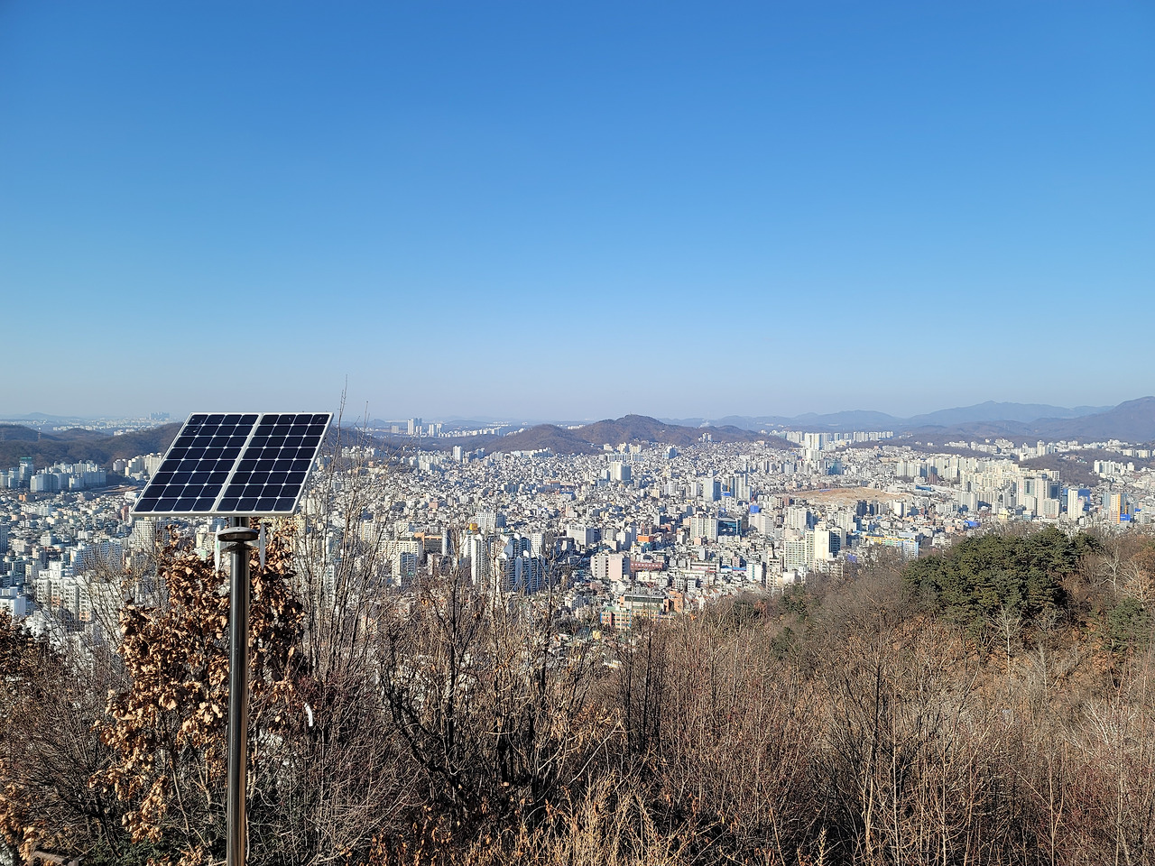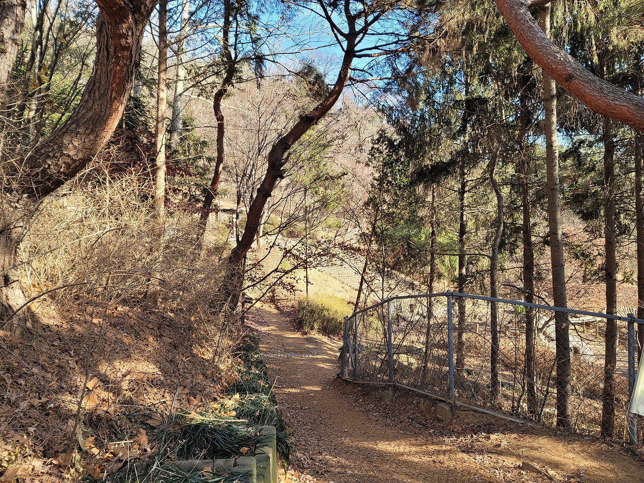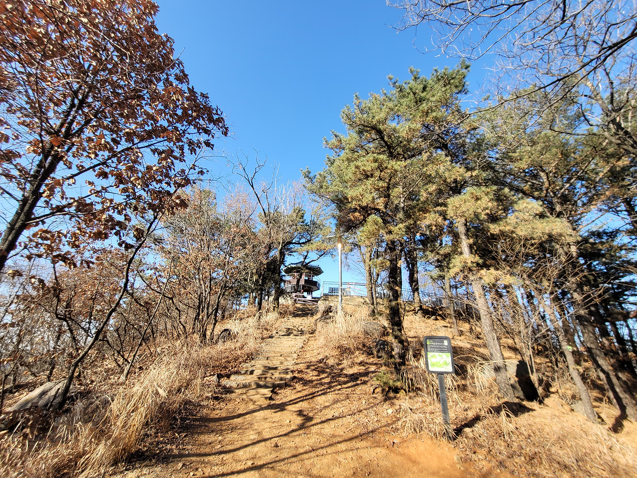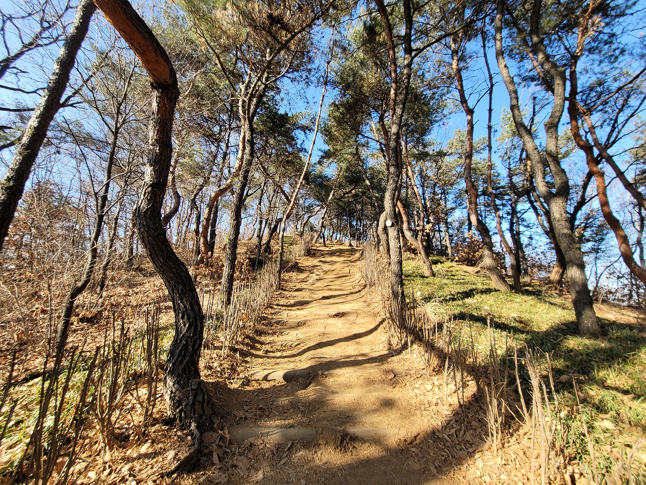 이런 전망 좋은 백련산은 서울 시내 다른 산들보다 소음이 적다. 도로와 떨어져 있기 때문일 것이다. 그래서 조용하게 산행할 수 있다. 주된 길은 길게 뻗은 능선길이다. 몇 군데 내려가는 길이 나 있다. 서쪽으로는 은평구, 동쪽으로는 서대문구이다.